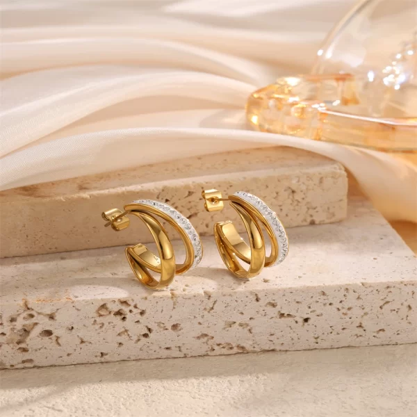 Fashion Gold Color Stainless Steel Rings For Women Chain Hollow Out Crystal Zircon Finger Ring Jewelry 2025 Gift