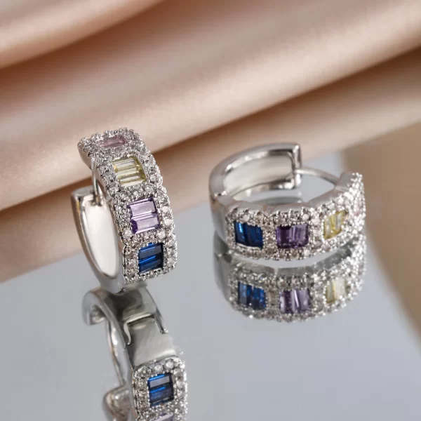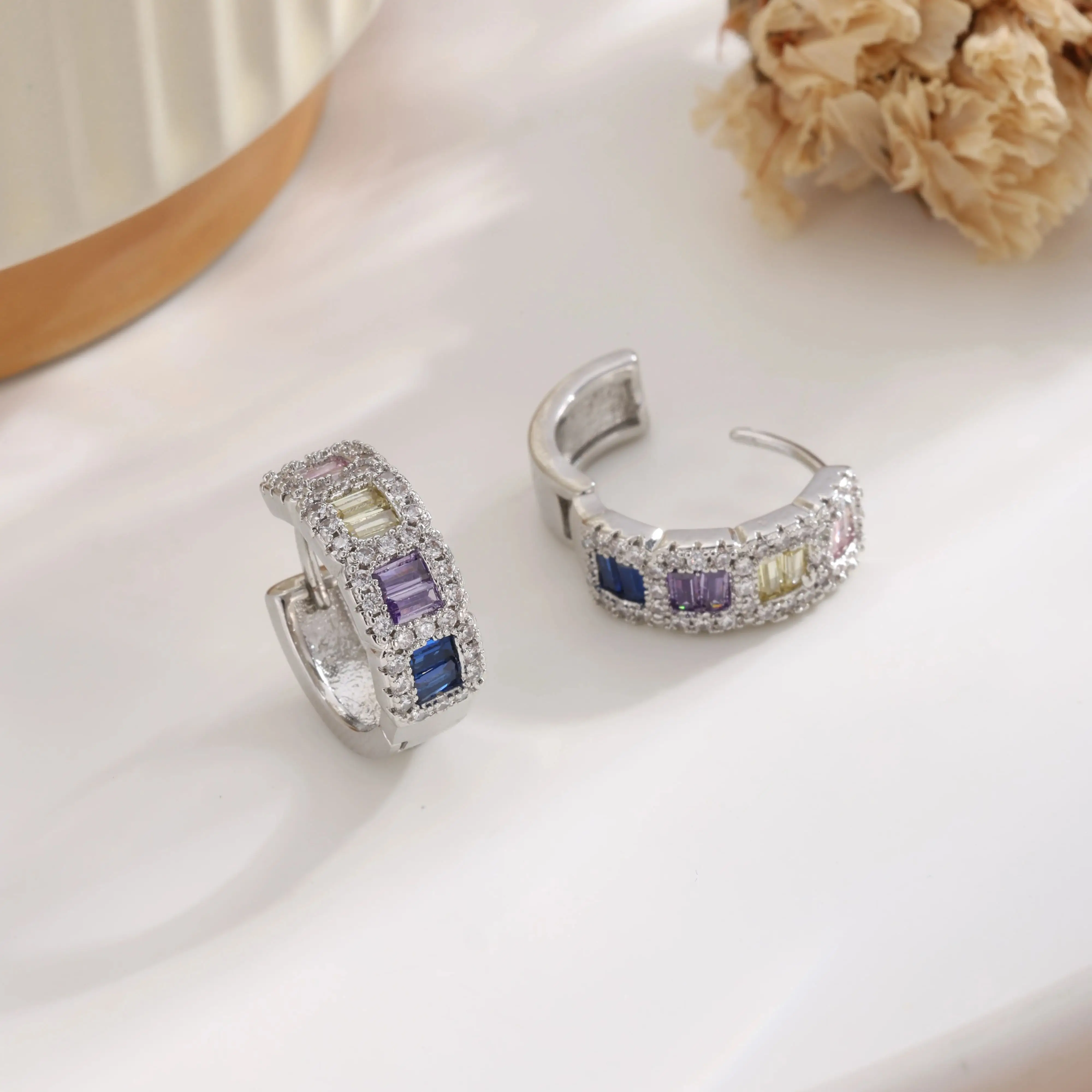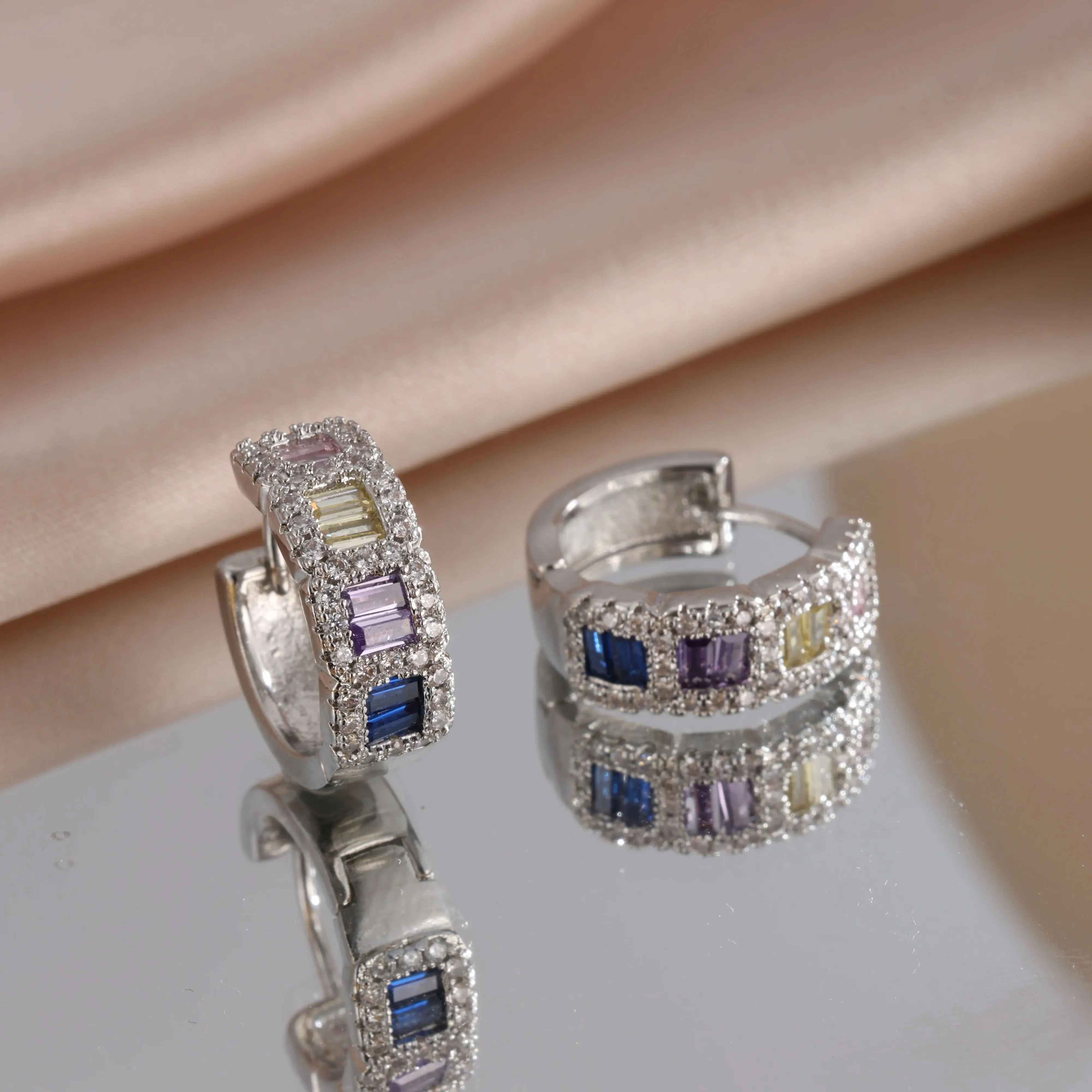 New Rainbow Rectangular Cubic Zirconia Hoop Earrings for Women Luxury Wedding Accessories Party Fashion Jewelry